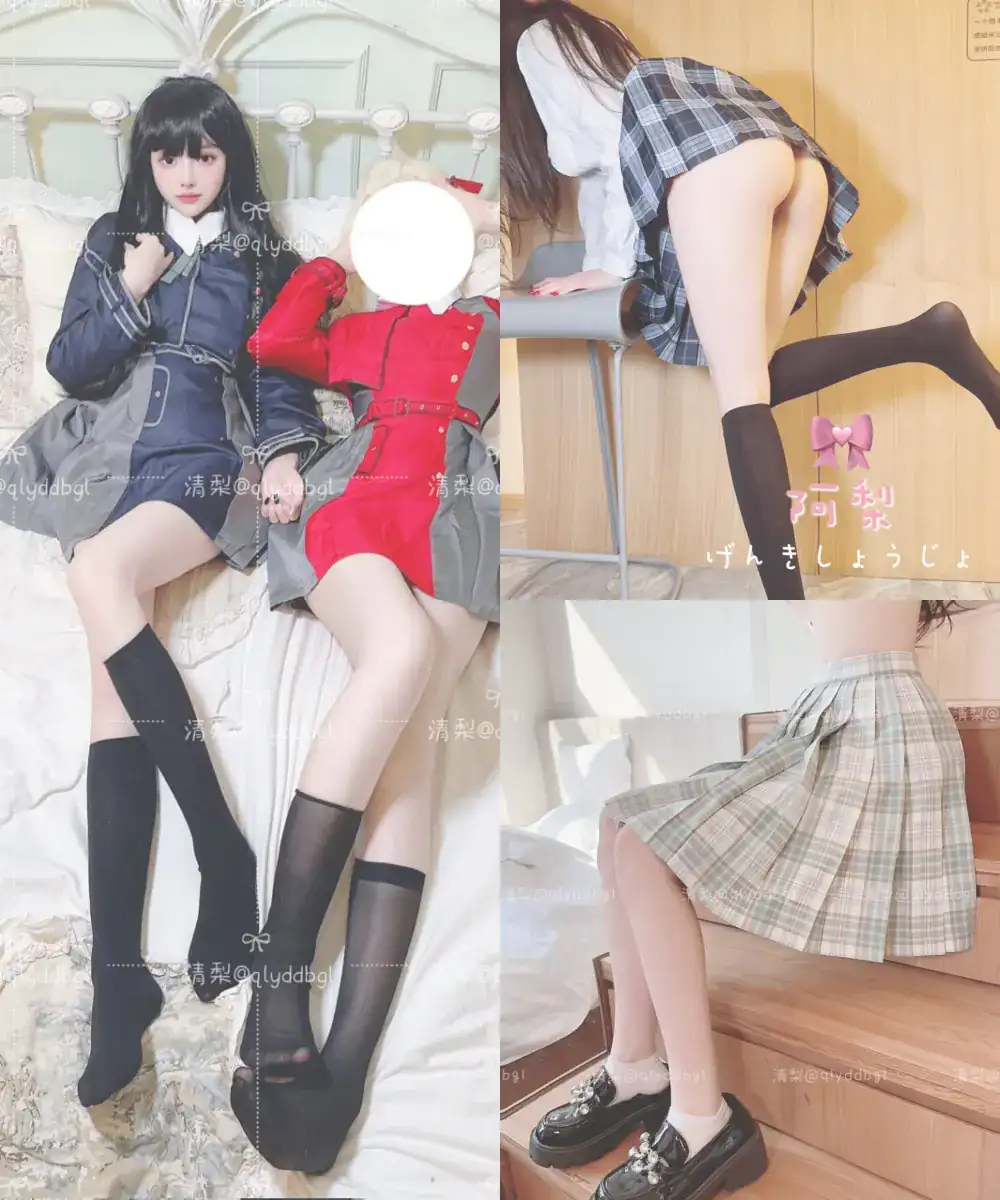 柔白的床品铺成一片安静的海,铁艺床架在顶端勾勒出圆润的线条,像一排被晨光抚过的音符。清梨与同伴并肩躺在中央——她着深海蓝与雾灰拼接的制服裙,腰间的系带收出利落的线条;同伴则是一袭热烈的猩红与冷灰对比,像火与云的并置。光从侧窗倾落,细细勾亮衣料上的缝线与扣件,也在枕头与褶皱间留下柔和的阴影。镜头从床角的刺绣缓慢推近,掠过两人错落的膝线与袜口,再停在清梨清亮而平静的目光上——她指尖轻轻拢住领口,像在整理情绪,也像给这场静默的合奏设定起始拍。空气里只有纱窗轻响与彼此呼吸的韵律,节奏由快转缓,画面因此显出电影般的留白。两套制服的色调互为对照:蓝是沉稳,红是勇敢,灰是彼此的过渡;它们在床单的米白上汇成温柔的三和弦,让青春的情绪既有光也有分寸。